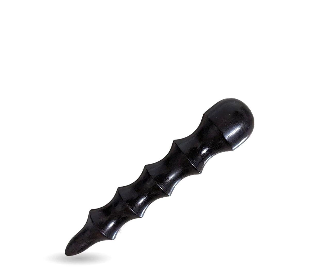 Эбонитовая палочка фигурная, 10 см. выполнена в виде рельефной палочки, имеет два конца: один узкий, второй широкий в виде полусферы, имеет удобный захват для пальцев в виде выступающих ребер-скребков, надежно фиксируется пальцами при работе с различными маслами, кремами или лечебными средствами.